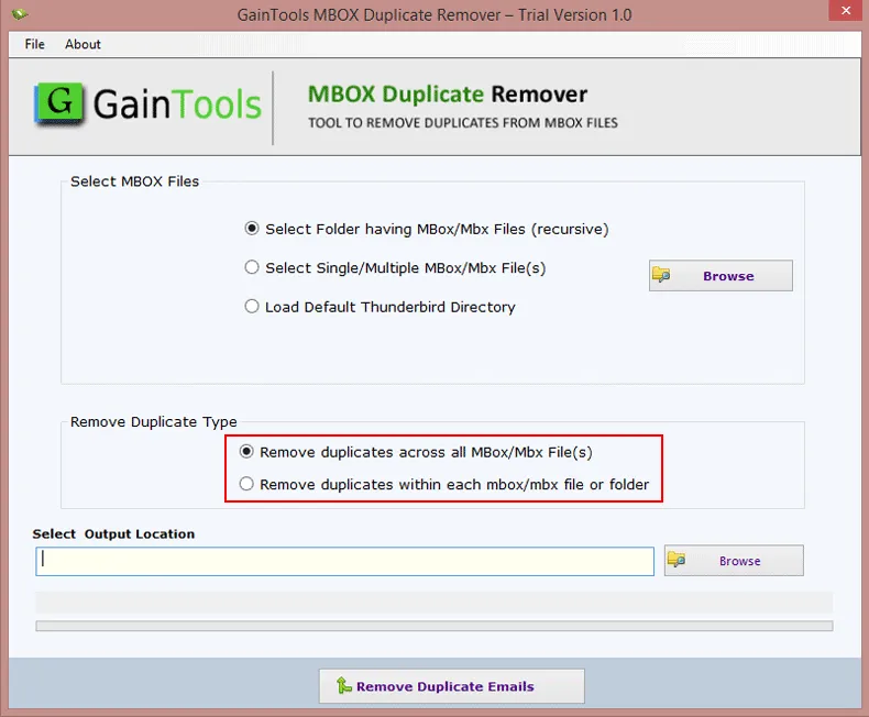 Filter options are a great help for real, adding filters like file or folder mode, the auto load of MBOX file from Thunderbird, and the Duplicate Removal within and across folders, really makes the process precise and cut down the process of unnecessary file selection. Great tool!